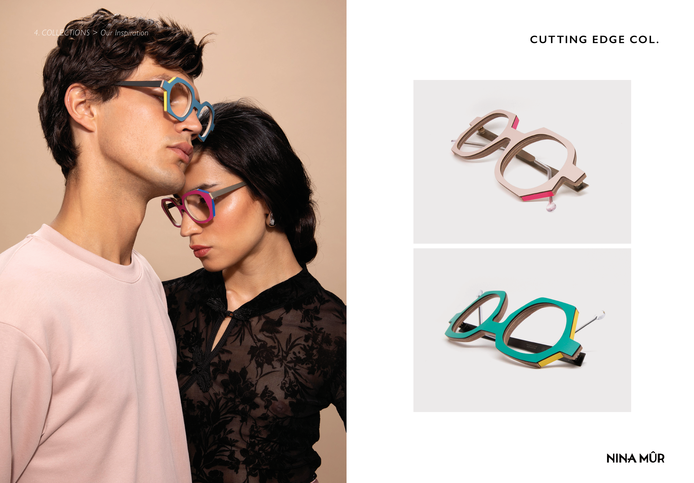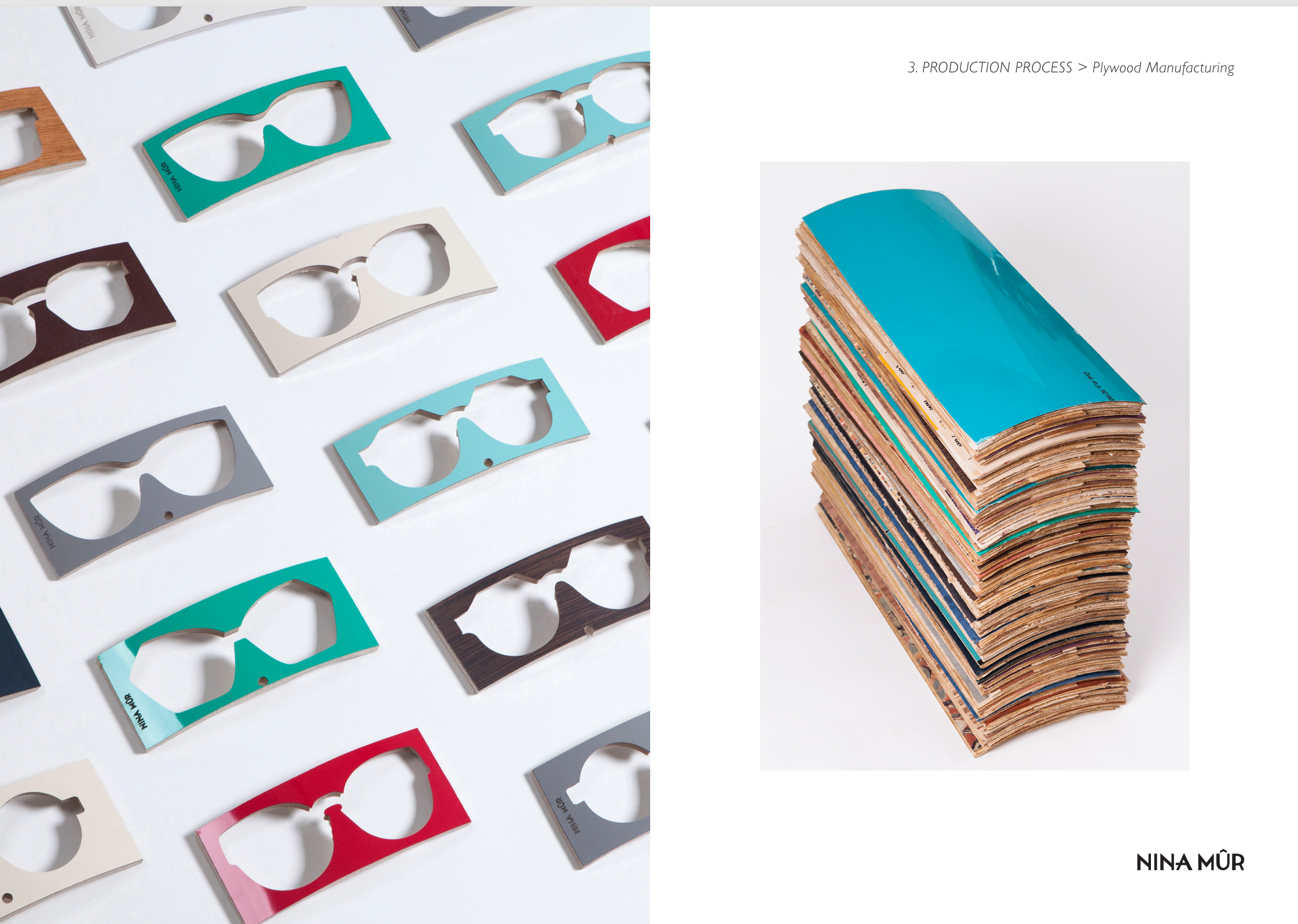 2018年にスタートしたこのブランドのデザイナーはロレーナ・セラーノさん。特徴はフィンランドの白樺の合板とプレスされた特殊な紙を組み合わせたカラフルなフレームです。なにも奇をてらってこの素地を使っている訳ではなく、母親が経営するメガネ屋の娘として、小さい時からメガネに触れてきた彼女だからこそ生まれる疑問から長年の研究と実験を経て誕生したのがニナミュールなのです。